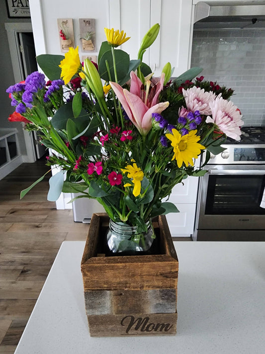 Rustic Wood Farmhouse Crock / Planter - Mom