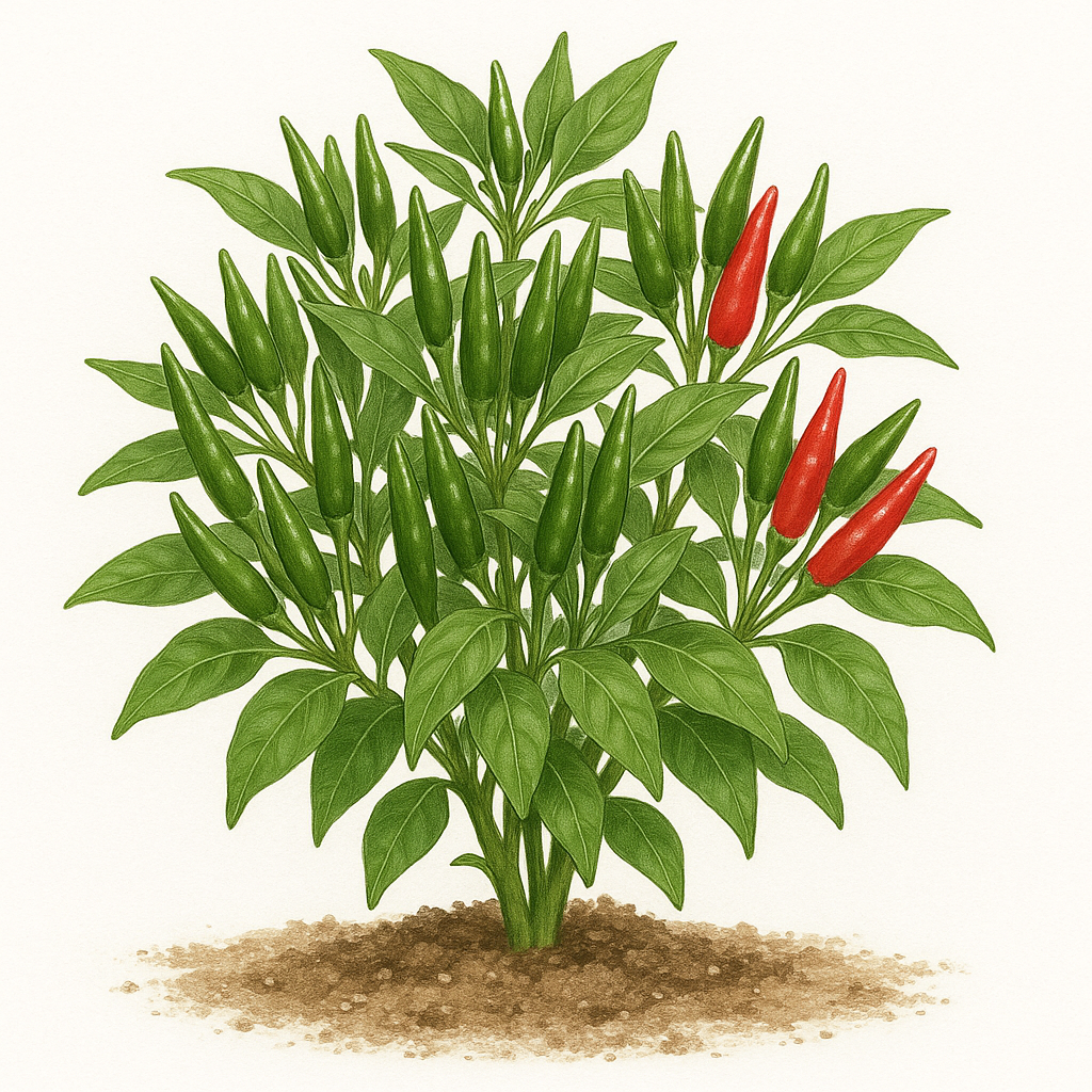 El chile serrano es un chile versátil conocido por su intenso sabor medio-picante, ideal para añadir un toque fresco a salsas y diversos platillos. Esta planta prospera en climas cálidos y requiere suelo bien drenado y pleno sol para producir chiles abundantes y saludables. Perfecto para quienes buscan una variedad de chile confiable y sabrosa, el chile serrano ofrece valor culinario y facilidad de cultivo.