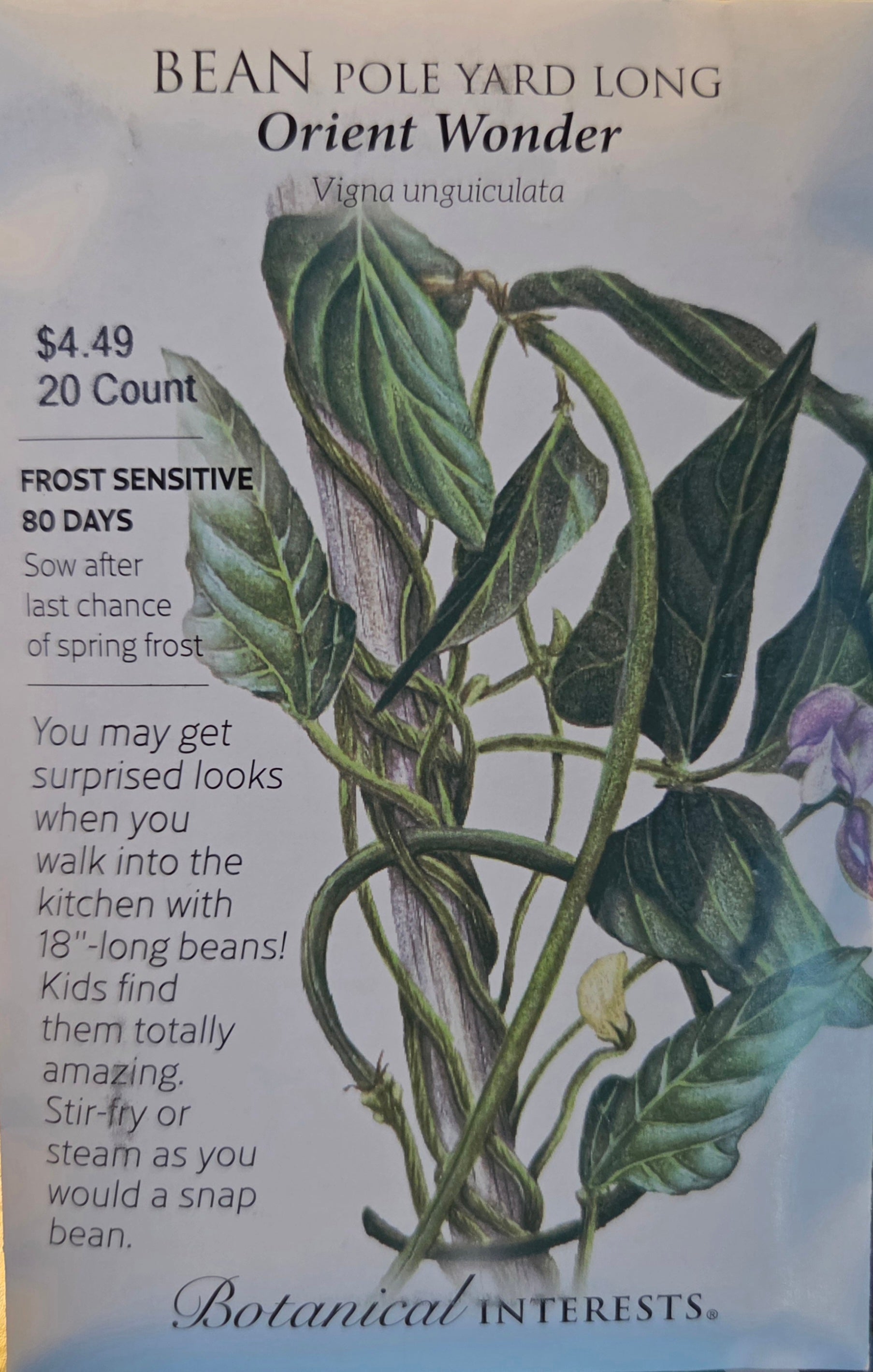Bean Pole Yard Long Orient Wonder seeds deliver vigorous vining plants that produce abundant harvests of tender, elongated pods. These Asian heirloom beans thrive in warm climates and require sturdy support structures for optimal growth. Each plant yields prolific crops of flavorful beans ideal for stir-fries and fresh preparations. Direct sow seeds after the last frost when soil temperatures reach 60°F or higher. Space plants 4-6 inches apart along trellises or poles. With consistent moisture and full sun exposure, expect productive plants throughout the growing season. Perfect for gardeners seeking high-yield, specialty legumes with authentic Asian flavor profiles.